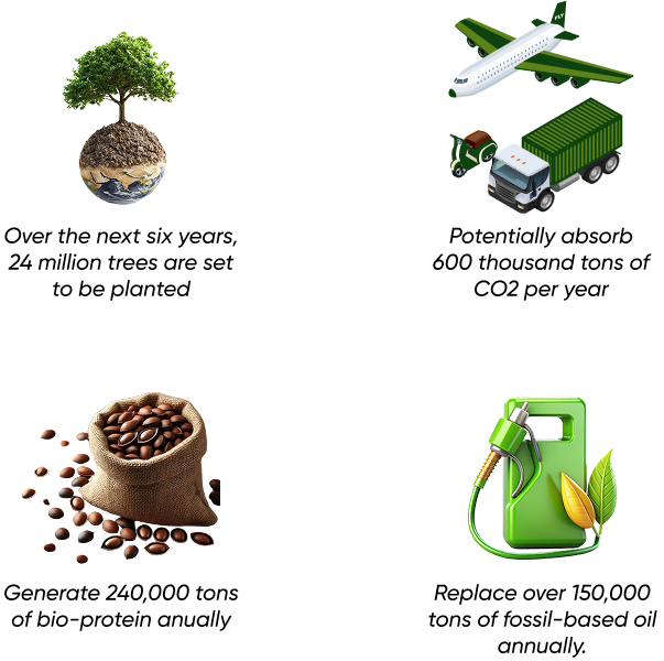 Deforestation is a major contributor to greenhouse gas (GHG) emissions and accelerates climate change. By utilizing productive trees to restore degraded lands, we believe we can achieve four key benefits: Substantial carbon sequestration, Enhanced biodiversity, Improved local livelihood, and Sustainable production of bioenergy. Among various non-food land crops, we have identified tree species most suitable for large-scale reforestation efforts in Indonesia. In collaboration with our partners, we continue to develop and cultivate elite tree varieties adapted to local conditions.